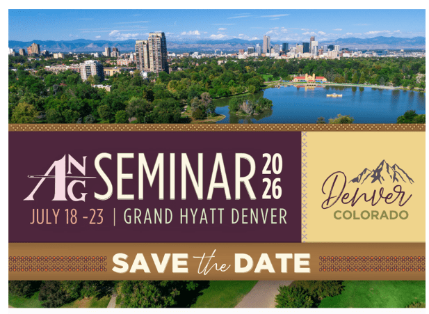 Registration for The 2026 ANG Seminar in Denver is open and as of today there are 10 classes that have already sold out. If you are planning on going you need to hurry to sign up for a class or 2. I looked at the catalogue and there are still some great looking classes but…..