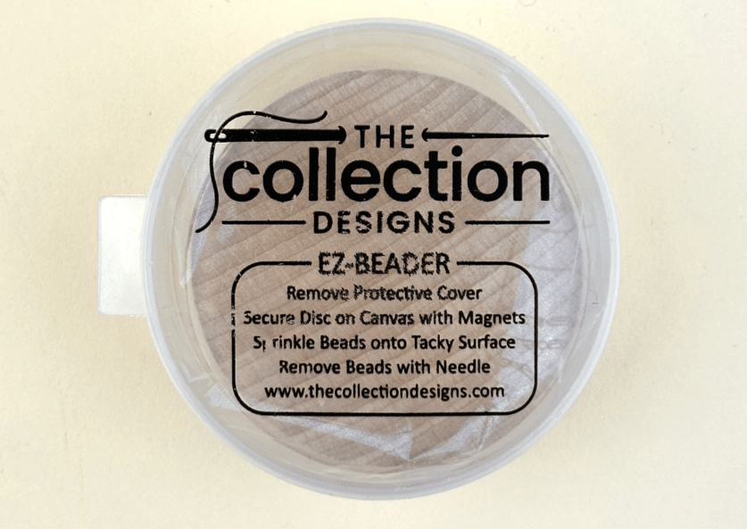 Tips and Tricks: No matter how often you bead on your canvas you need something to corral the beads so they are not “every where” !!! I recently was introduced to the EZ-Beader by The Collection Designs. What a wonderful item. It’s a small piece of wood with a magnet on the back and sticky material on the top. No beads are falling off that !! Someone showed me that you can take the back of the magnet off, keep the wood in the plastic box and THEN put it on your canvas. This way if something does slip off it lands in the plastic box ! Genius !