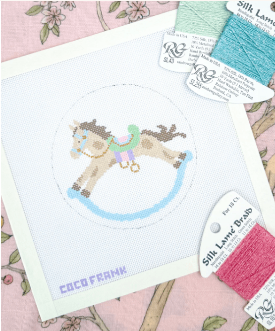 Who was that Famous Stitcher? This is Laura Love of Laura Love Designs. https://www.lauralovedesigns.com/ She is a 3rd generation needlepointer from Oklahoma. She moved to London in 2018 and fell in love with life there. She was asked to design canvases for various people and that is when her company was born. Her canvases are inspired by things she loves and stitch painted. You will recognize her designs right away.