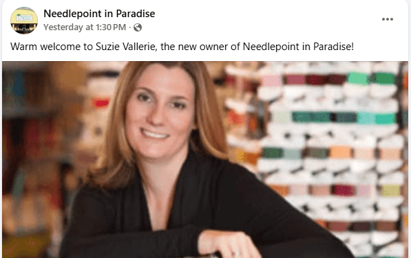 The time has finally come – the end of an era – Melissa Shirley is retiring after 46 years of designing needlepoint !! Yikes! One of the most beloved designers, but fear not – the company is not going out of business. The employees of the company will continue to produce and sell all of her wonderful canvases. She plans on going back to painting on surfaces without holes !! I am sure everyone in the needlework community wishes her well.