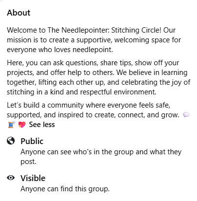 NEW CLUBS – sort of !!! The first one is The Needlepointer in conjunction with Needlepoint Now magazine is doing the Leaf Wreath. The club starts in March/April and will last 6 months. The first shipment you get blank canvas, a thread pack, a copy of Needlepoint Now with the stitch guide, stretcher bars and the template for the leaf. They also have a link to a tutorial on how to prepare your canvas. If you didn’t do it the first time around, here is your chance to again create this interesting wreath ! https://theneedlepointer.com/products/layers-of-leaves-wave-2?se_activity_id=168867823858&syclid=d4qbprr7j1os73diad1g&utm_campaign=Leaf%20No%20Trace%3F%20Club%20Surprises%20Await!_168867823858&utm_medium=email&utm_source=shopify_email&selling_plan=6057197810&variant=48101335859442
