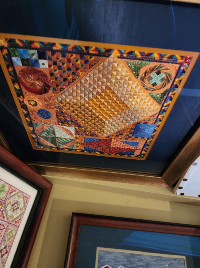Who was that Famous Stitcher? That is Judith Baker Montano – a Canadian fiber artist with many best selling books such as “The Art of Silk Ribbon Embroidery” or “Crazy Quilt Handbook”. She has had a career that spans many artistic mediums. Read her biography: https://www.judithbakermontano.com/JBMwebsite/bio_html/bio_about.html