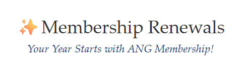 It’s almost that time again – ANG renewal time !! You can begin to renew on October 1st. Watch for an email before that as they are going to offer more membership options that you can choose from.