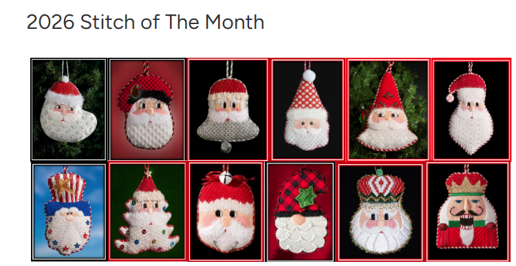 To complete the winter holiday theme in clubs – The Needlepoint Clubhouse has a Nutcracker Club by Susan Roberts. There are 5 classic nutcrackers and an all new Valentine’s version. The series starts in Jan 2026 and they come with canvas, threads, stitch guide AND embellishments. They also offer a 10% discount for paying in full !! https://www.needlepointclubhouse.com/products/nutcracker-club?_kx=di6BKbqlX0z0_r-FgYg7VgX_cnHap6E52Vd1c3YUq6g.W43bG6