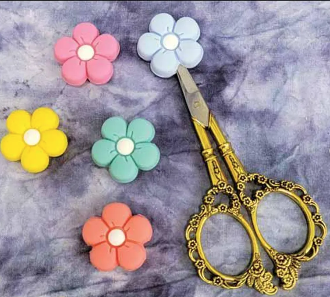 Tips & Tricks: Have you ever dropped your scissors – silly question. What happens to the point? Does it get damaged hitting the floor or worse hitting your foot. Protect the point with fun scissor protectors ! Check out Etsy for all of these to protect your 2nd most needed piece of equipment (needles first !)