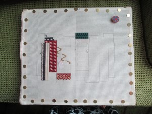 I hadn’t made much progress — mostly because I ended up ripping out and redoing the golden wave — it still isn’t finished, but the placement is correct now.