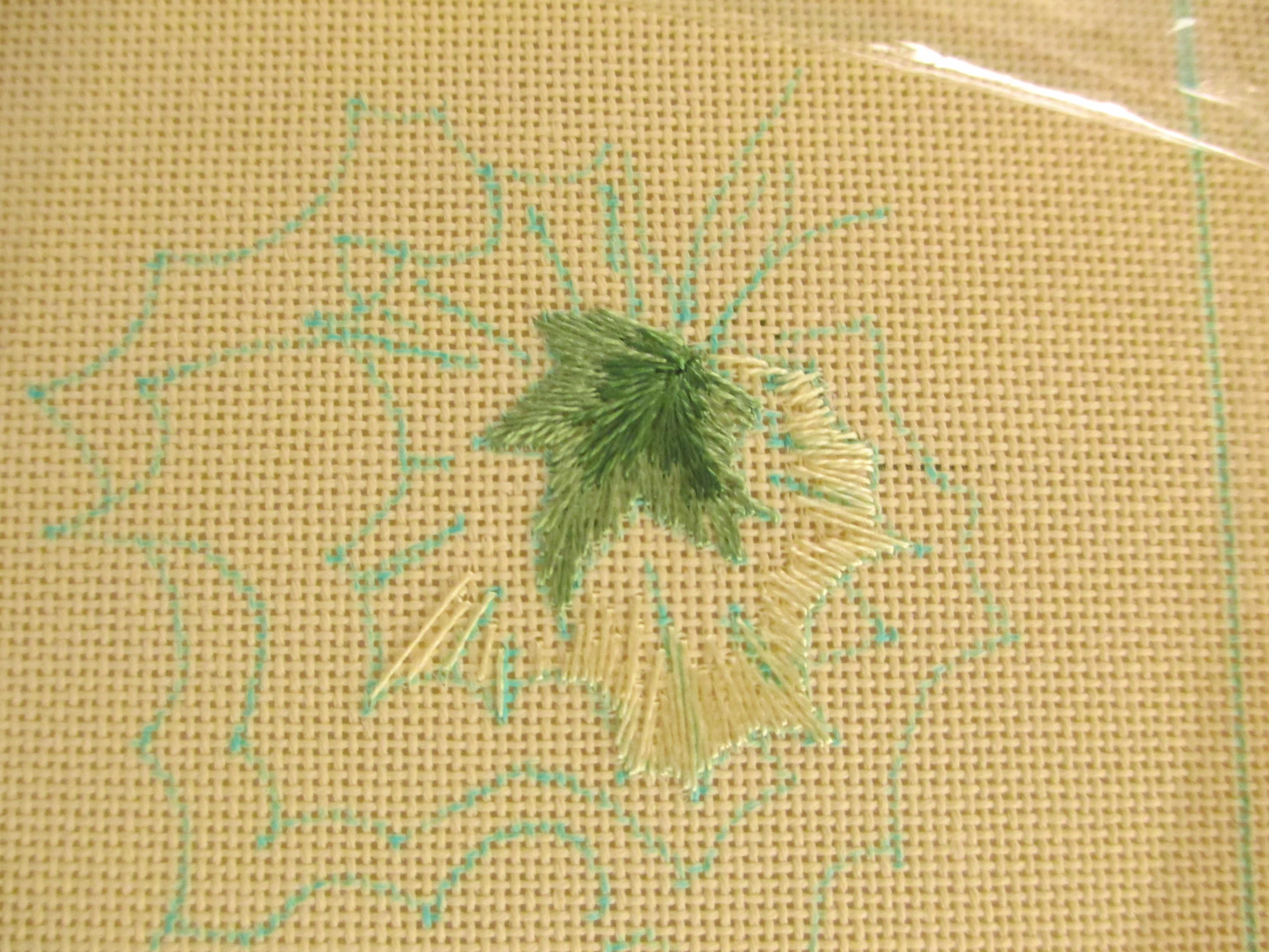 I started my two day class this morning. You can see from the picture that it involves shading. What we had this morning and for an hour this afternoon is the extent of the shading part. I am going to need some help when I get back! Then we colored two of the blocks. It took me longer than most as I have always had trouble staying within the lines! The vinyl is a new technique to me where the canvas is covered with a light weight sheet of vinyl to protect the sections that you are not working on and to protect the thread from catching on the canvas. Clever, huh? As you come to a square to stitch, you cut a door in the plastic.