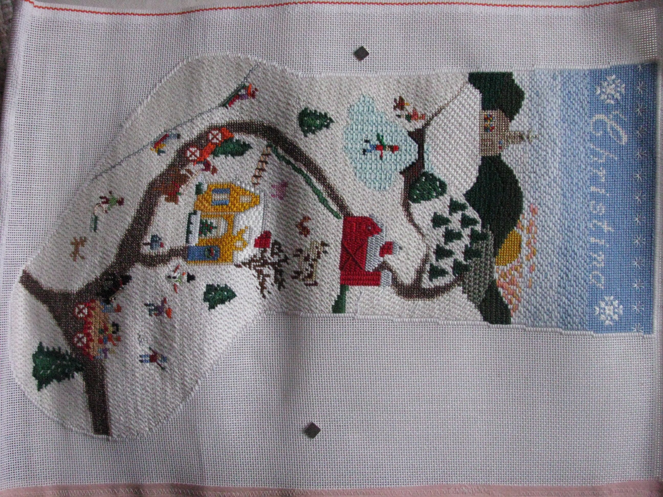 I finally finished the Christmas stocking for my daughter-in-law.  Since I couldn’t be at tonight’s meeting and I hope to finish it and give it to her before the December meeting, I figured I’d post a picture.