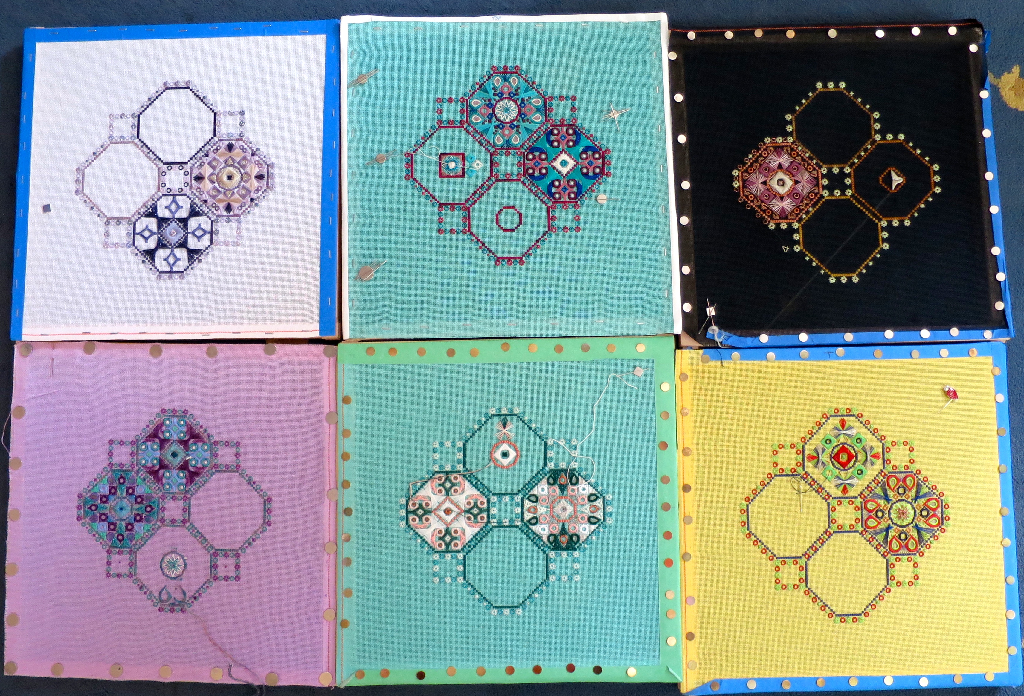 Six of us met at Sue’s on Saturday to continue with our 2014 Stitch of the Month! Summer has taken its toll on some of our stitching goals. A few of us are on schedule and started working on the third octagon. The rest of us are playing “catch up”.