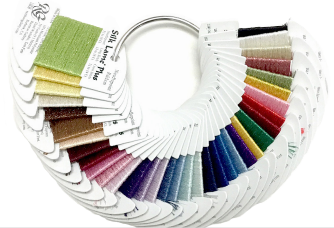 Rainbow Gallery has a new thread line coming – Silk Lame Plus – a Silk Lame type ribbon