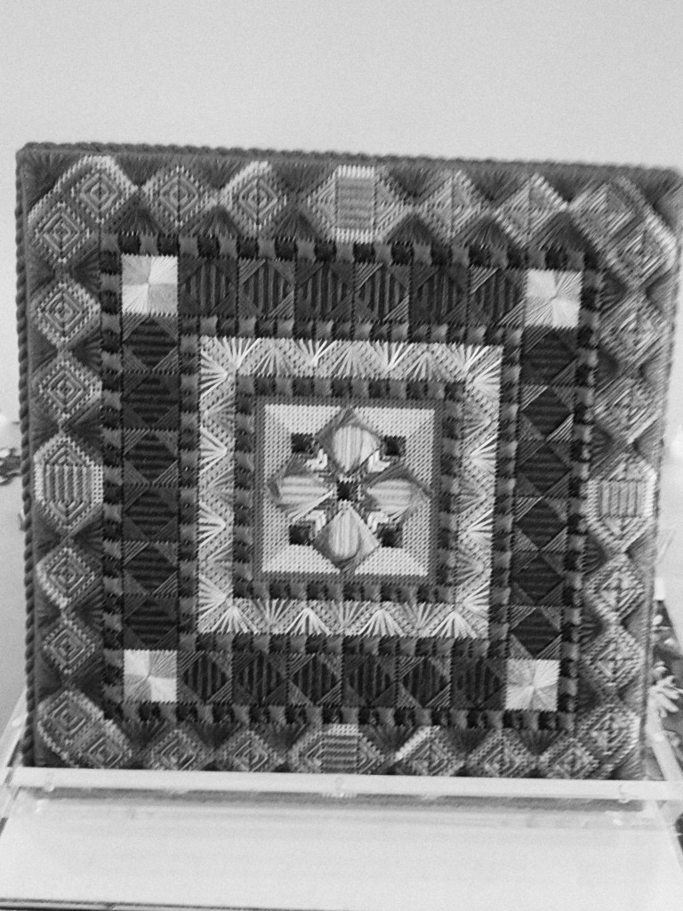 This past week was so interesting!! Jacqui did a talk about “Grey Scale”. The most helpful thing I can tell you is to learn how to make a picture on your phone Black and White! If I have this correct, by changing the picture to black and white you will immediately see if you have a balance of color. For example, if you are stitching a piece in a variety of threads in one color – the black and white photo will show everything either very dark or very white – no variation. The more balanced your color choices the more black and white areas will be seen in the picture. Of course you may be going for a monochromatic look, but if not this is really helpful. She went over many terms which in itself was an “Ah Ha” moment for me. But best of all – she is not done. She is going to go into the subject further next month !! Great job Jacqui !! Don’t miss the next installment !!