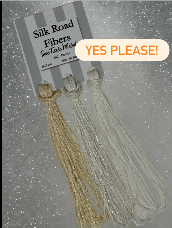 THREAD ALERT ! Silk Road Fibers brought you Soie Tissee in all those vibrant colors. You just want to walk up to the wall they are displayed on and touch them! Get ready folks – they are bringing out at the spring market Soie Tissee METALICS ! Can’t wait to see them when they hit the stores !! https://silkroadfiber.com/soi-tissee-metals/