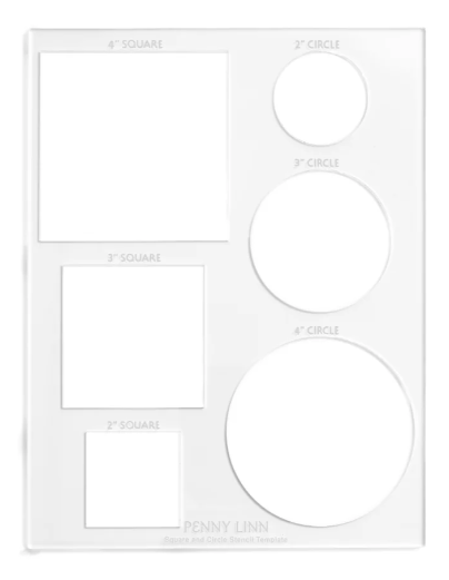 I also found a very handy thing that Penny Linn has – you may have seen those stencils to mark the canvas to the correct size to fit a box etc. I have always seen them individually. Penny Linn has a sheet with 6 sizes on it. No misplaceing them when you buy several sizes ! The sheet has 4″, 3″ and 2″ Squares and Circles. https://pennylinn.com/products/acrylic-stencil-sheet?variant=44809969008697
