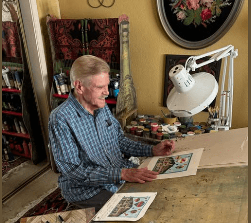 Who was that Famous Stitcher? This is the famous artist Peter Ashe who passed away last year. He designed canvases for more than 50 years after getting his start in San Francisco. He is mostly known for his stockings and his southwest designs.