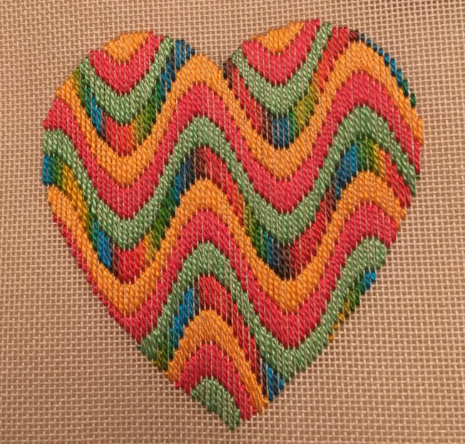 I was going to do a Bargello using the pattern in an earlier NeedlePointers, but, obviously got too involved in the show and forgot all about skipping a thread between stitches! That meant a much compressed wave of Bargello. I loved it! The only problem was that I was stitching on this during the day as well. I have barely moved forward on the WIP!