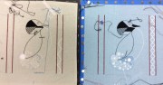 Jill W. on the left, the green on the dark green canvas does not show up well, but Tina F.’s red/pink shows up well in the turquoise canvas!