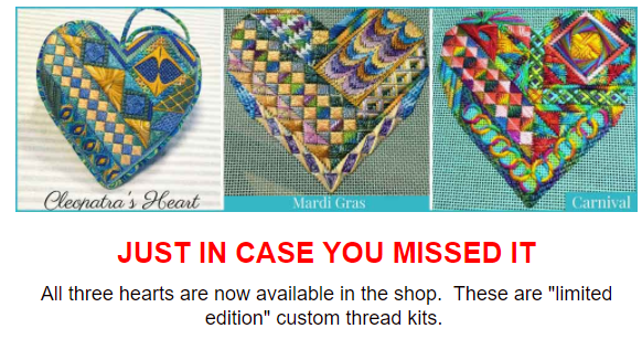 Seasonal Clubs are popping up and there is something for everyone. Bestitched has an assortment of clubs to sign up for and they even have Valentine’s Day – already ! Can’t start to early I guess. Then the Needlepointer has the most adorable tote bags as a club.