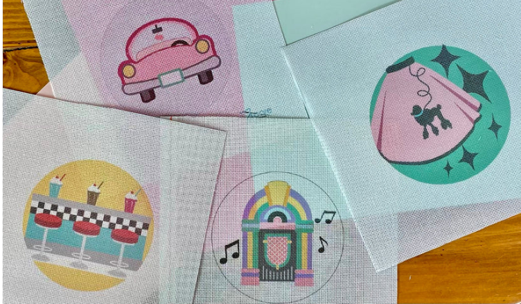 One of the more unusual grouping of canvases that I have found is by Atlantic Blue. They have an array of coasters that are easy and quick to stitch and each one is a “stain” yup – you read that right !! Coffee, beer, wine and lipstick ! They have a sense of humor !! https://www.atlanticbluecanvas.com/products/drink-ring-coasters-set-of-4?_pos=1&_sid=44b5ca5d7&_ss=r