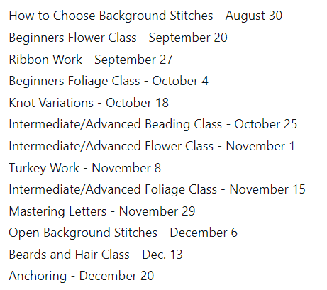 Some of the pictures above were from our member Melita G.’s blog. Both she and another member, Brenda C. have wonderful blogs that you can sign up for. They do all kinds of different projects and have many tips. You can read about other guilds they are involved in and their adventures in needlepoint as well as other types of needlework. Always interesting !! Melita’s blog is: Melitastitches4fun’s Blog | A place to share my needlepoint and connect with other stitchers. and Brenda’s blog is: Brenda’s Needlepoint Studio (brendasneedlepointstudio.blogspot.com) Follow them both and enjoy all that they do and share.