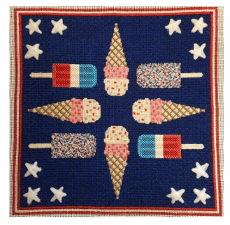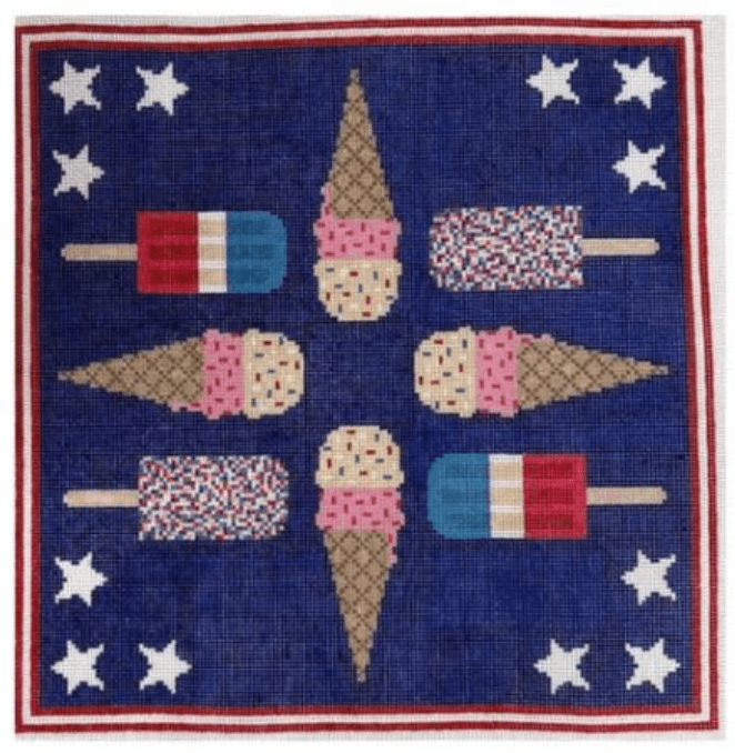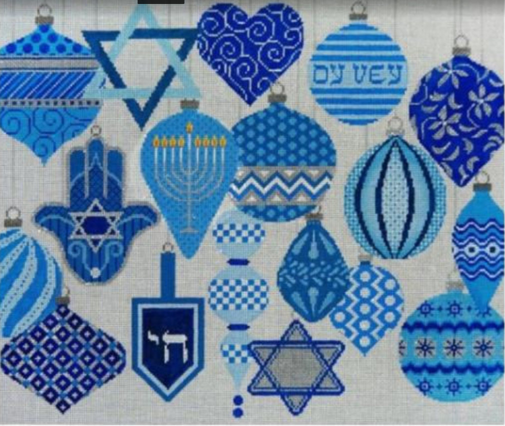 Ridgewood Needlepoint has a new exclusive canvas. This summer canvas is all about Ice Cream from the Salty Stitcher. There are various ways to purchase it but – come on – how cute is that !?!?!? They also published some little charts of Hanukkah symbols that can be used in various other projects! Contact the store for more information. Ridgewood Needlepoint