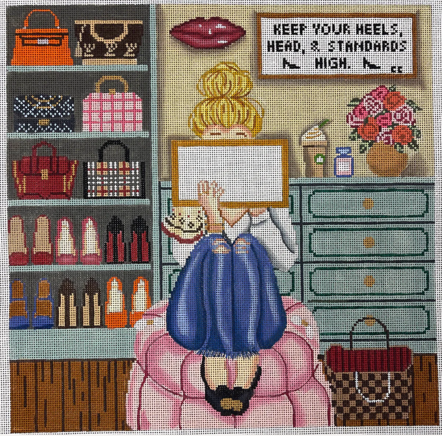 Who was that famous stitcher: That was Kate S. H. Dickerson. She has been in business for 51 years and going strong. She has everything from game boards to patriotic to shoes to Judaica to Funky Pumpkins and anything else you can think of in between. Kate Dickerson (KSH) Needlepoint finished pieces