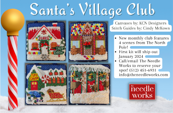 Village Needleworks in Omaha has an interesting sale that ends today. When you go to the check out you choose an ornament and smash it !! Inside is your discount amount for regularly priced items, anywhere from 20% to 50%. If you shop online, just call the shop and they will smash an ornament for you. If that isn’t enough – your name will go into a drawing for a System 4 table stand and clamp. Village Needleworks Omaha’s full-service needlepoint shop