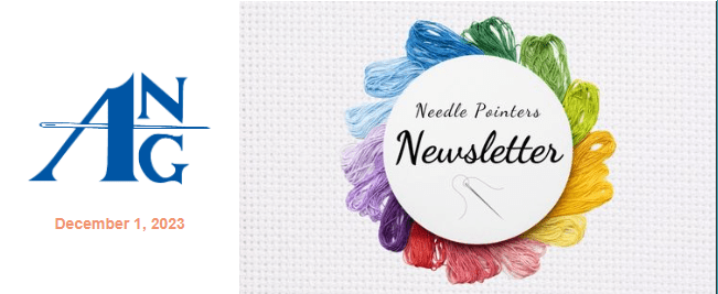 This week was the last meeting of this year. When the clock strikes Midnight on Dec 31 some how we will have made it to 2024 – WOW ! Did you ever think?? What this really means is a new year of fun and interesting new projects to explore. We are all looking forward to the luncheon on Saturday January 6th. Not only will it give us a chance to see people in person that we haven’t seen possibly since last years luncheon BUT we also get to see up coming programs, new board members and best of all – show and tell. I know, what people talk about most after a wedding or in this case a lunch is the food – well – it was really good last year so I can only assume it will be the topper on another great occasion for NJNA. Who cares how old we all are or how far the date has come, let’s get to the good stuff – new and interesting needlepoint !