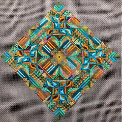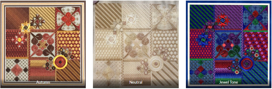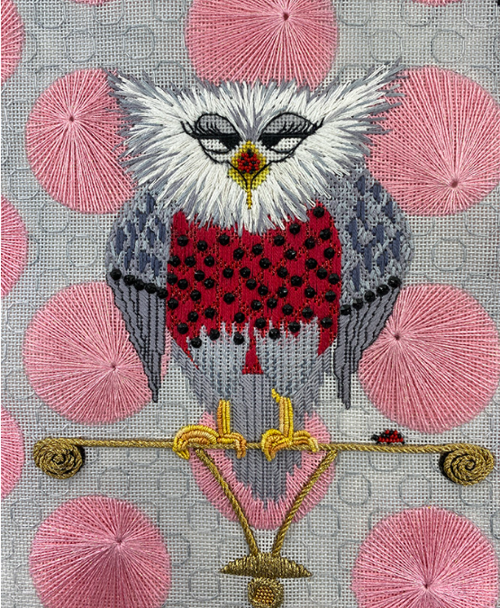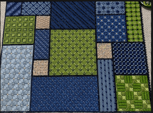 Going along with the theme of choosing a painted canvas and picking stitches and threads, be sure to watch the Kelly Starke video on how to finish the piece when you are done. You can go to KellyStarkeDesigns.com and get lots of information. Later in the year Kelly Starke will be doing a class that you will be able to sign up for and attend. Give it a try – the wait time for finishing keeps getting longer and longer – you have nothing to loose.