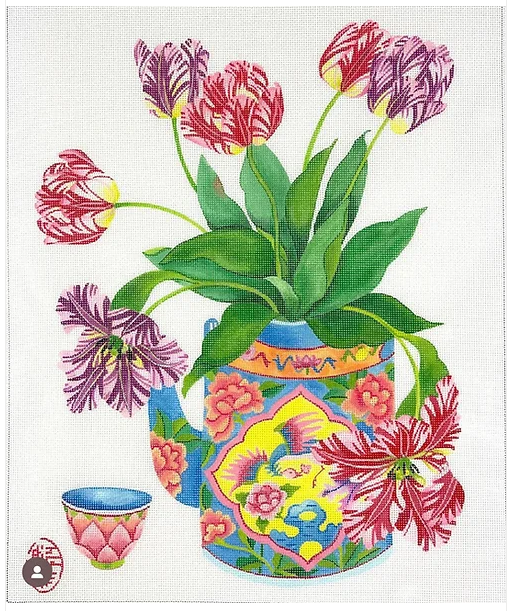 Who was that Famous Stitcher? That was Melissa Prince. She had a career in media advertising and a friend saw some of her paintings and thought they would be great as needlepoint canvases. She painted a few and took them to a local shop where they all sold immediately – she has designed over 500 canvases and counting !