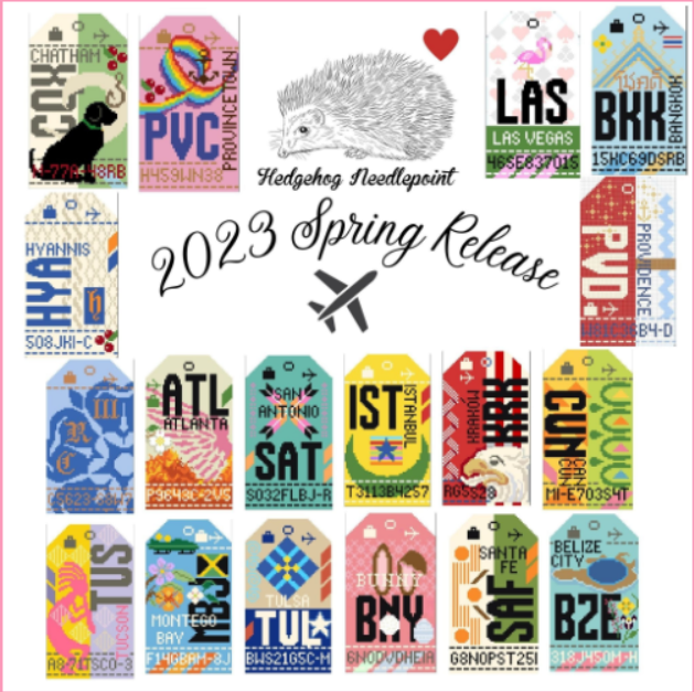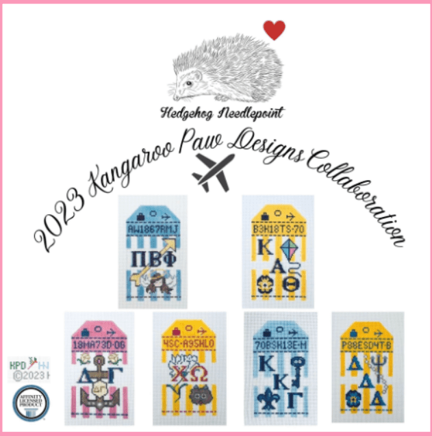Hedgehog Designs are those retro airport and destination tags and they have a new batch of them for the Spring Market. They also have partnered with Kangaroo Paw Designs LLC as they have the official licensing for the Greek Sororities and when you put it all together you now have Retro Greek Sorority Tags !! They have just released the first 6. Hedgehog Needlepoint