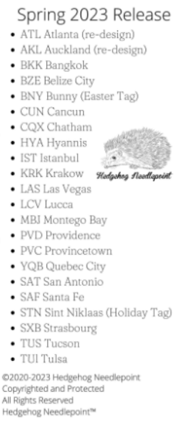 Ok – Ok, you can’t wait any longer for the new things from the Spring Market. Hold on to your wallets – so many wonderful new canvases that I can’t even think of showing them all to you. If there is a particular designer you enjoy working on then check out their web site because they were all VERY BUSY !! These items came from Stitch By Stitch in NY Ny Needlepoint | Stitch By Stitch Larchmont, NY | United States (stitchbystitchneedlepoint.com)