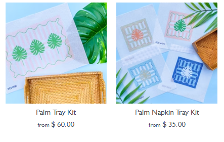 While we are shopping KC Needlepoint, they also have easy to finish trays and napkin holders. So different yet easy to finish and adorably exotic looking. Wonderful house warming gift for a Floridian Friend. https://www.kcneedlepoint.com/search?type=product,article,page&q=tray%20kits*