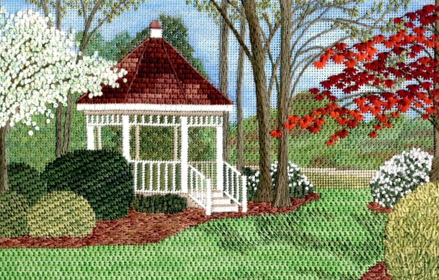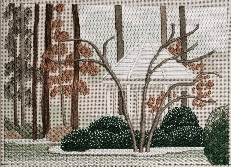 A big thank you to Melita G – she got in touch with Gail Stafford and let me know that Gail is retiring but only from her “real life job as a math teacher at North Carolina Wesleyan College”. She will continue to teach and design needlework – thank goodness !!!! She has some of the most beautiful scenery one can stitch along with her bargello projects.