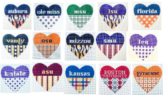 The 20th is the first day of Spring and what a nice way to start the season, by thinking of going away. Hedgehog Needlepoint has brand new luggage tags in 5 colors but this time they are round ! They make a great way to display other stitched items – not just on luggage! They are also adding to the list of collegiate hearts that they have partnered with Kangaroo Paw on. Lot’s to see and I believe lot’s more to come in the future ! https://hedgehogneedlepoint.com/