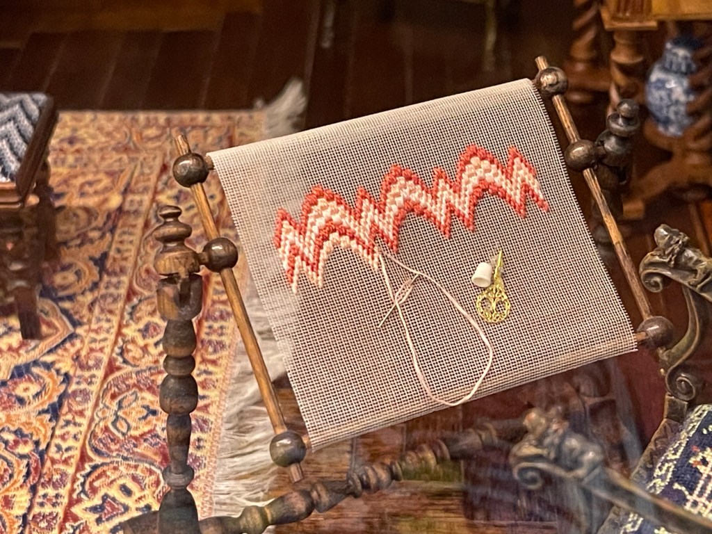 We were able to visit The West here in Tucson before Seminar, so I stocked up on Arizona and southwest related needleminders. We did visit the Mini Time Machine Museum of Miniatures, which was fascinating. If you love those miniature rooms and dollhouses, this is the place. Here’s some miniature bargello needlework from one of the houses.