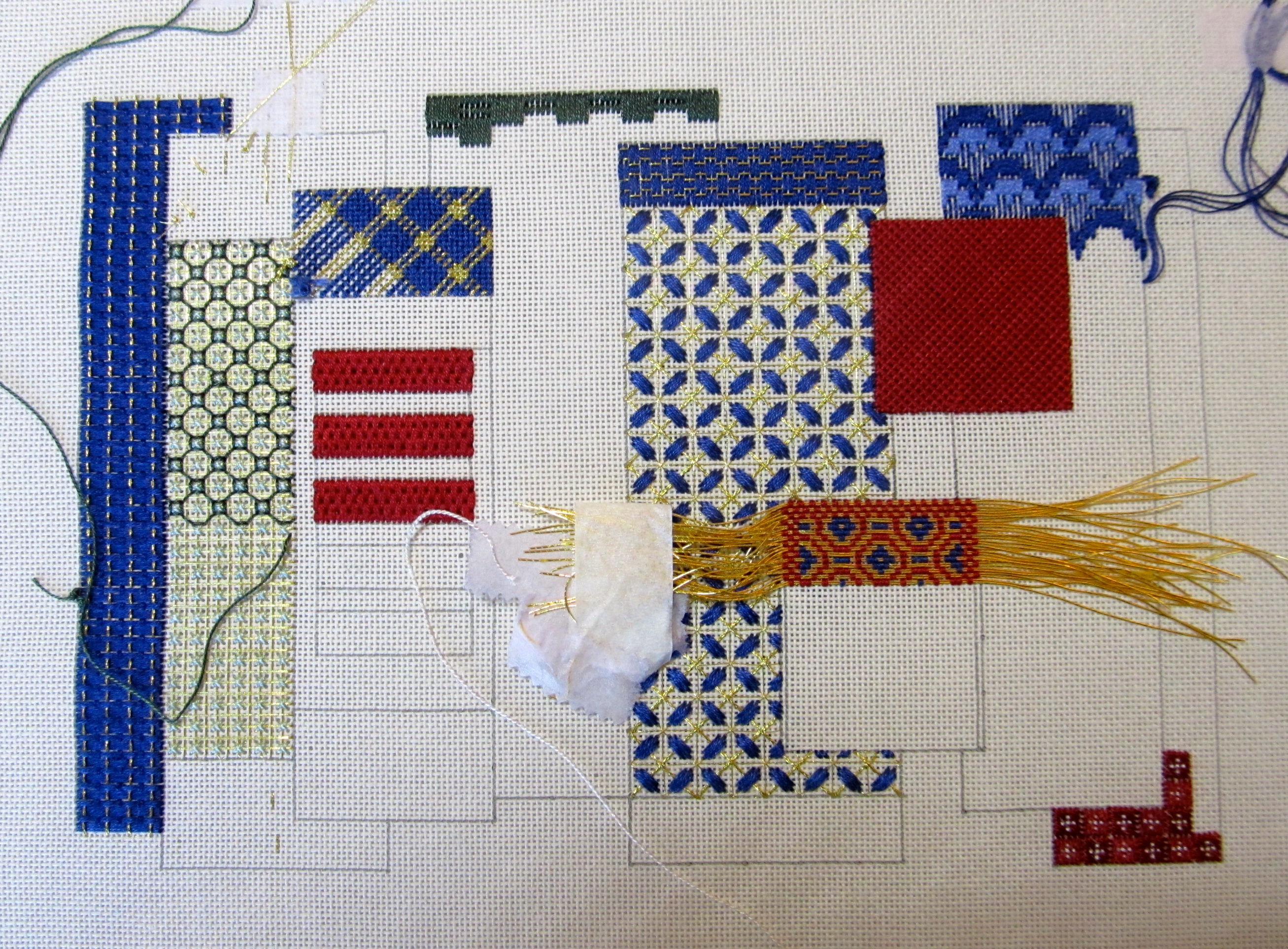 Today was the last day for my class, Imari Collage. We have had such a good time stitching this and have also gotten quite a lot of stitching done. I think it would be good if classes were at least one day longer than necessary so that students could get “significant” stitching done before they leave. In my humble opinion, that would lead to more stitching finishes!