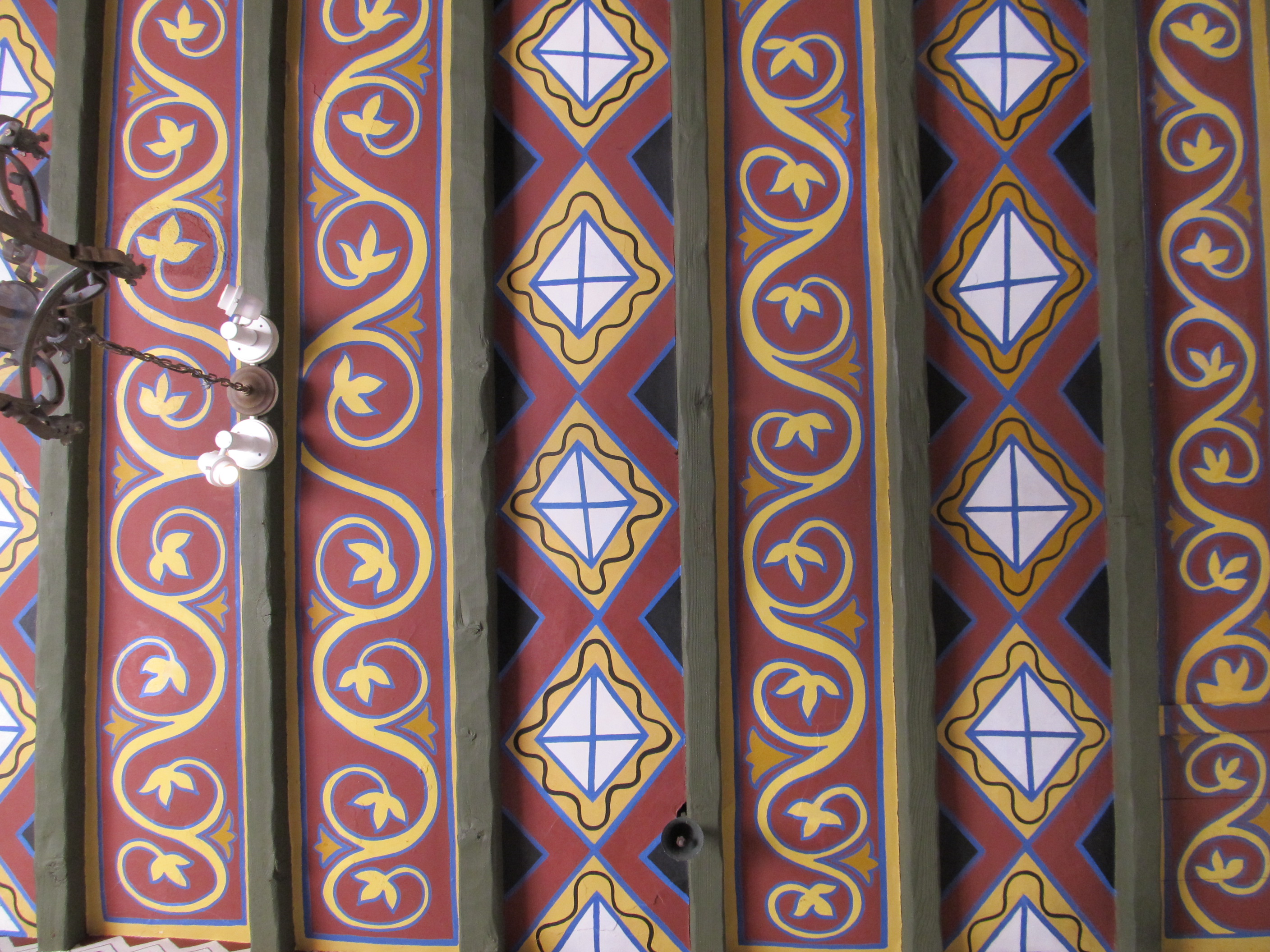 Our docent showed us through an old mission church (where I did some more needlepoint research!) and then we walked around to the old stone church.