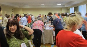 Tonight was Teacher's Showcase. Rosie and I decided we would check it out and see if any of the east coast teachers had potential workshops for our chapter at some time in the future. We went into the room and were shocked to see the mass of women trying to see what was displayed by each teacher.