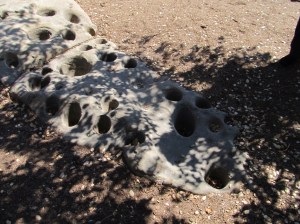 We left on our tour of the mission in San Juan Capistrano about 9:30. Rosie will be describing much of what we saw. The Native American women who worked for the padres were responsible for food preparation and one of the foods they prepared was based on acorns. After shelling the acorns–how do they do that?–they would grind it to a powder by grinding one rock over another. The friction created cups in the rocks. The women all gathered around the one rock to work, and what do women who have gathered do? They talk! Thus the name of the rock.