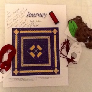 In a little over an hour she fed us with many hints, went through the stitches and demonstrated several she thought important for,us to see in person. We all agreed that she is an excellent teacher. You would never know that she had taught a two day workshop on Sunday and Monday which followed the week long seminar with only Wednesday free of any teaching! She was patient and thorough! I asked her to sign my copy and she even took time to write a note. By this time of the morning, 7:30, she is now on her way home to Peabody, MA. This has been a great “journey” for me!