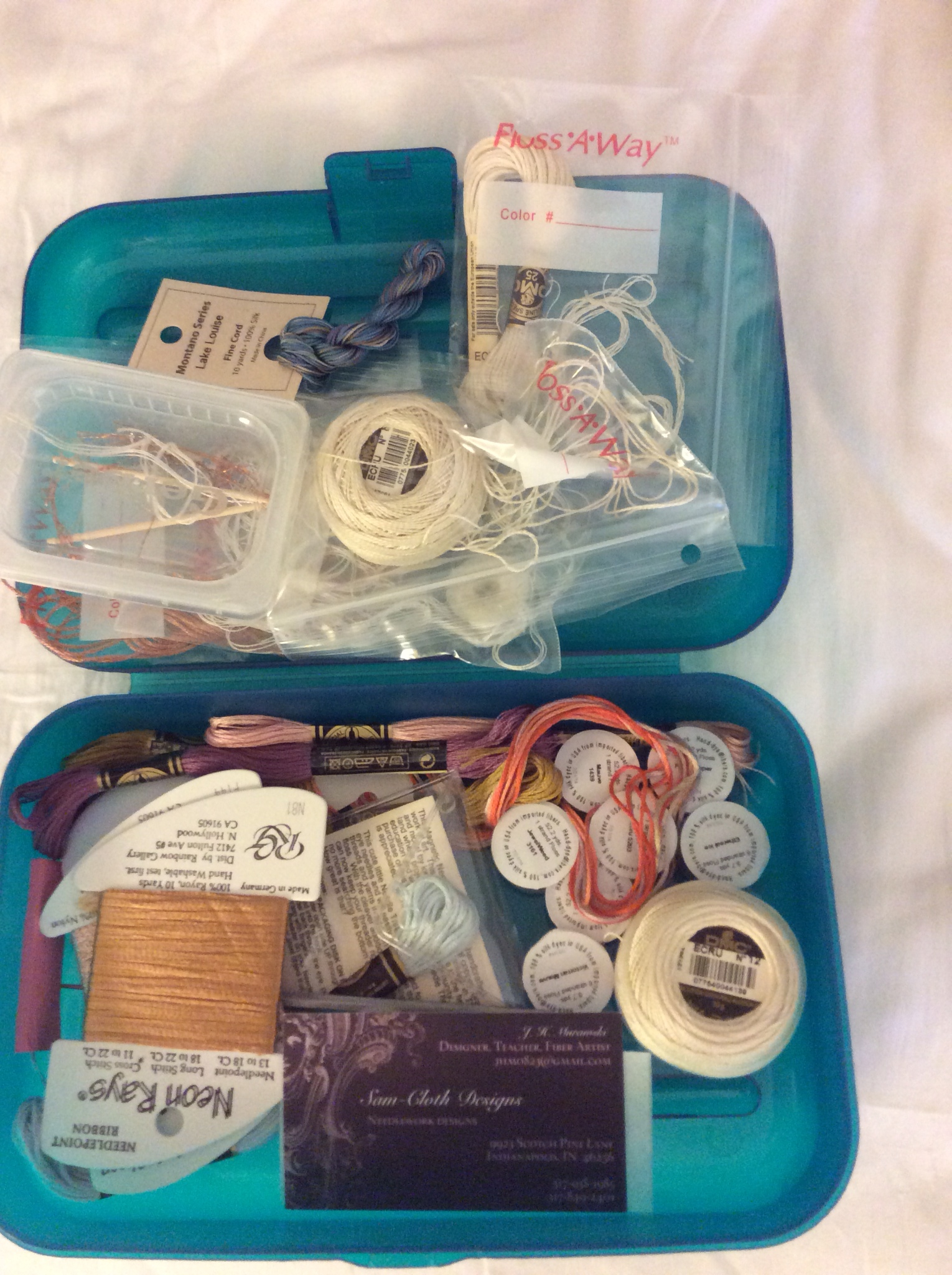 The camaraderie in the class is wonderful, especially as we all curse having to pull out and redo sections and get knots in the loooooooong thread required for the Hilton triangles. I'm thoroughly enjoying it.