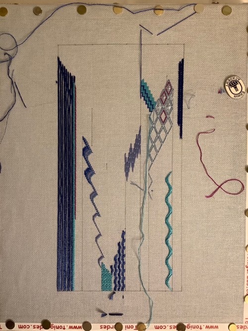 This was one of the classes that I took at the ANG seminar in Houston last year. It’s a canvas by Brenda Stofft with stitch guide and thread suggestions from Cynthia Thomas, the instructor.