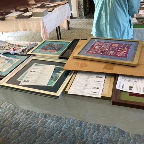 The staff then carefully examined each piece and noted whether there were any nicks in the frames or any distortion in the canvas/linen. Each piece was then assigned a number, which will be the number you see in the Exhibit listing. Our numbers start at 204.