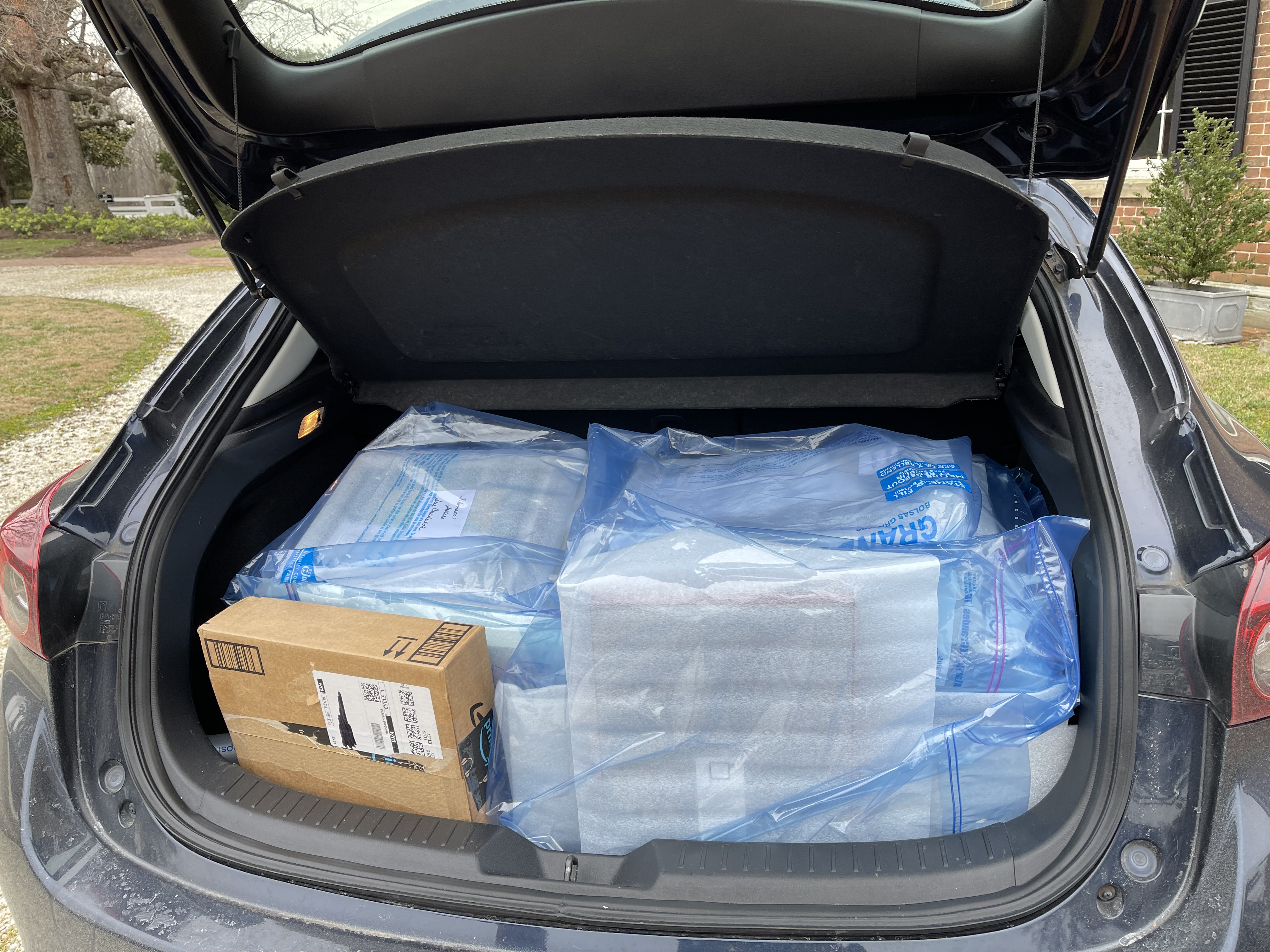 Fortunately, our packaging system, which we’ve implemented over the last few years, proved to be effective in getting the pieces unloaded and ready for logging into the system. The volunteers were well-organized and ready for us – a large table was set aside for the pieces. Since we had so many, we did wind up using a second table.