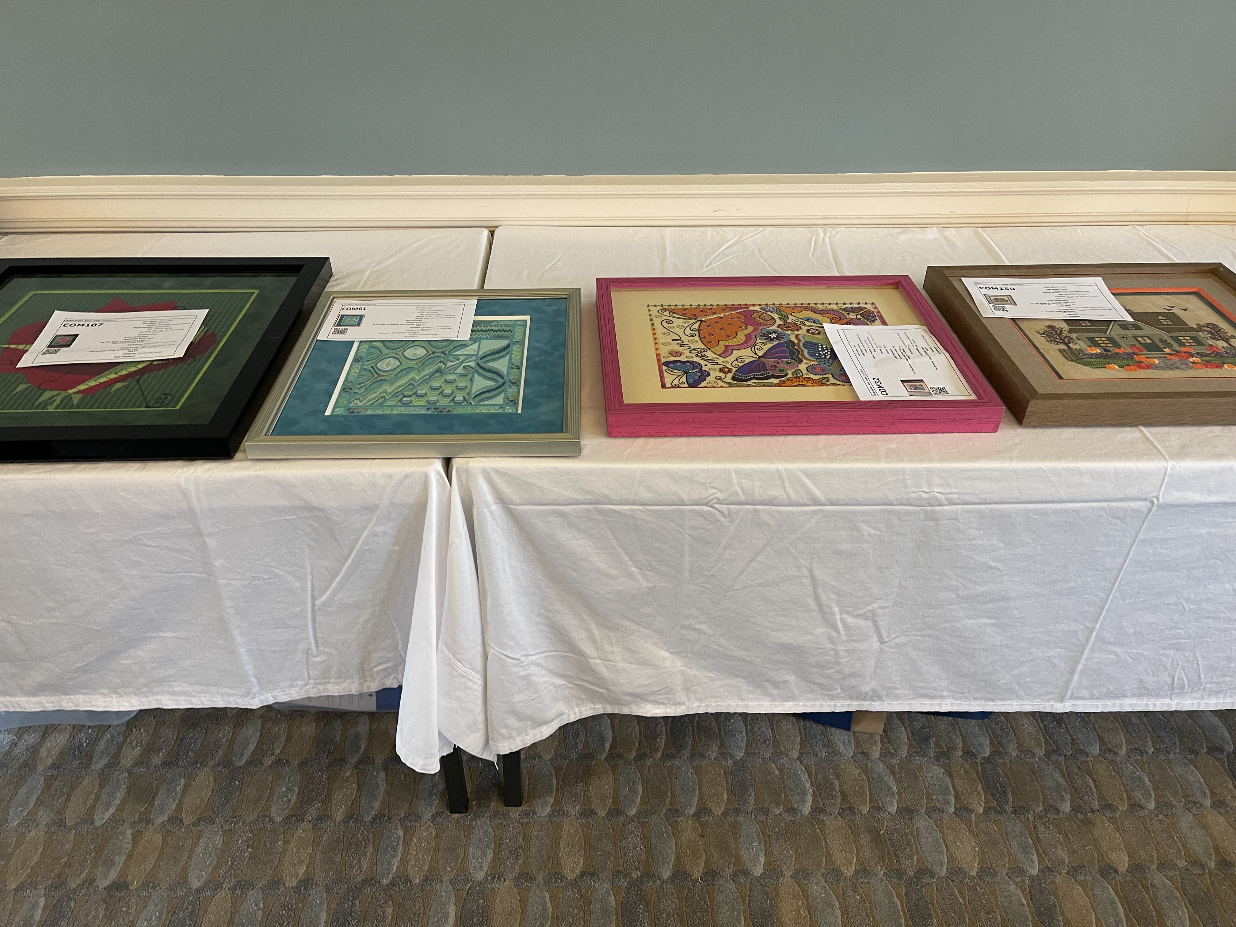 NJNA is known for bringing one piece stitched in various colorways. This year we had the 2021 ANG Stitch-of-the-Month, Stratigraphy by Jennifer Riefenberg. Although we only had three versions, they were all very different with one done in the original grays, one in browns, and one very colorful.